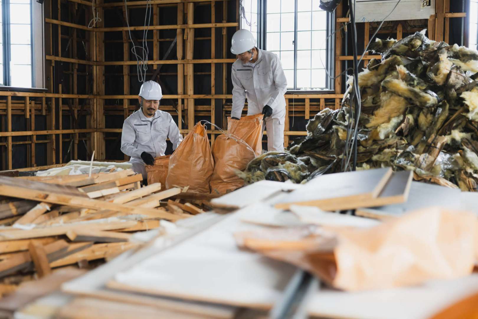 これは現在、法律で定められた必須の手順です。 2006年以前に着工された建物では、耐火・断熱性能を高めるためにアスベスト含有建材が使用されている可能性があります。解体工事を行う際は、必ず事前に専門の資格者が図面や現地で調査を行い、アスベストの有無を労働基準監督署等へ報告する義務があります。