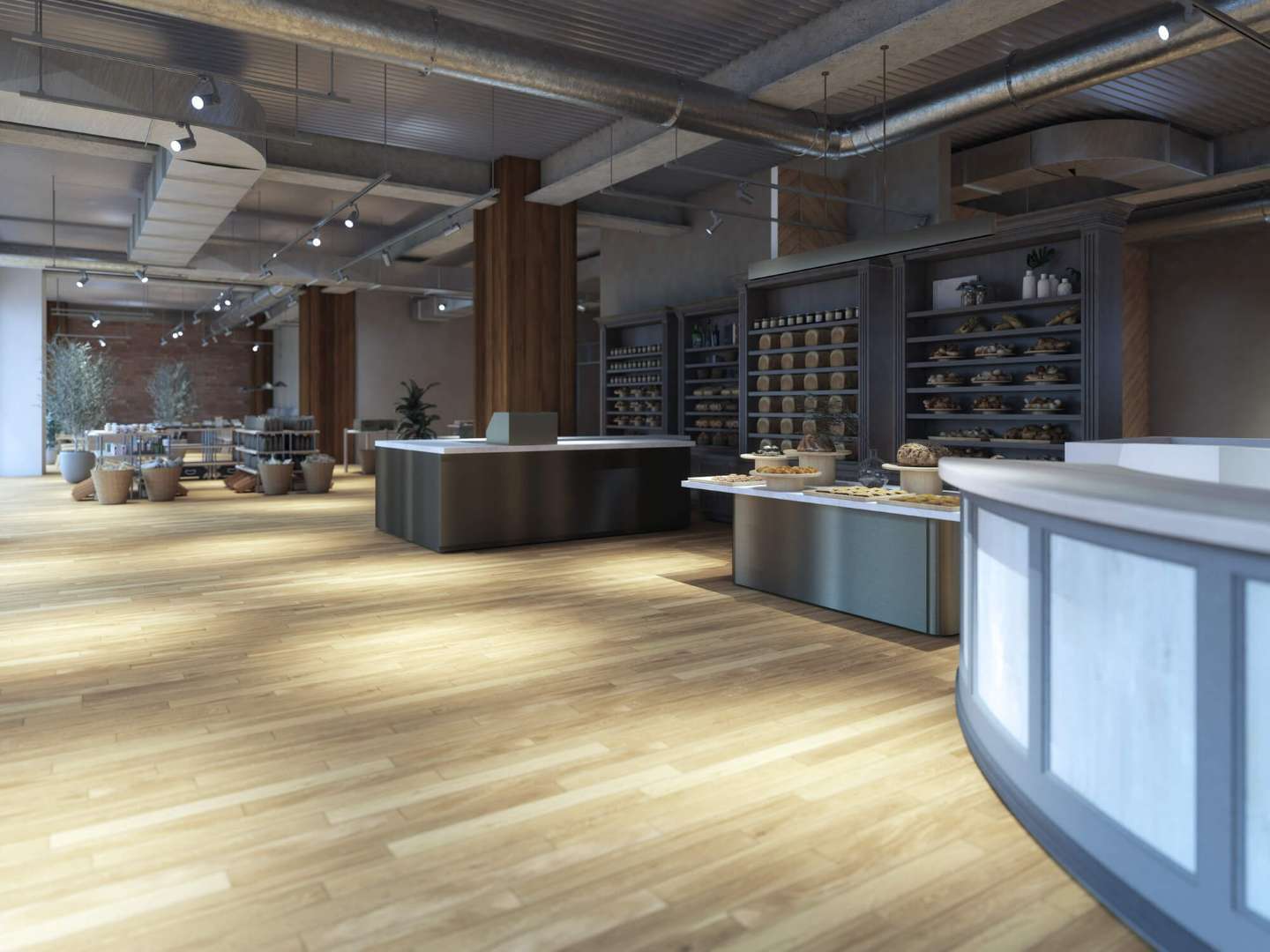 天井板を取り払い、コンクリートの躯体や配管、ダクトをあえて見せるインダストリアルなデザインは、開放感と独自性のある空間を演出し、多くの人々を魅了しています。