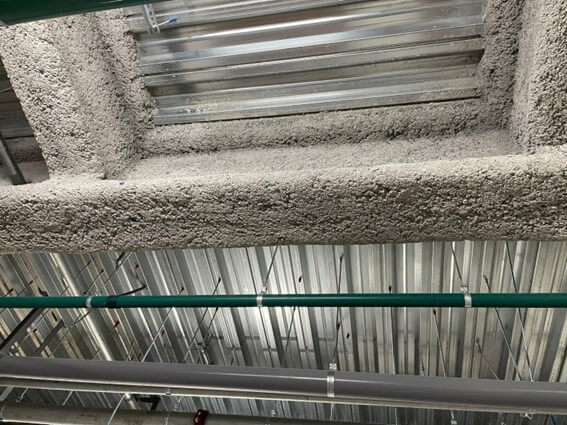 實川耐工の耐火被覆工事は、さらにこの配管が見えないように覆う施工を施します。